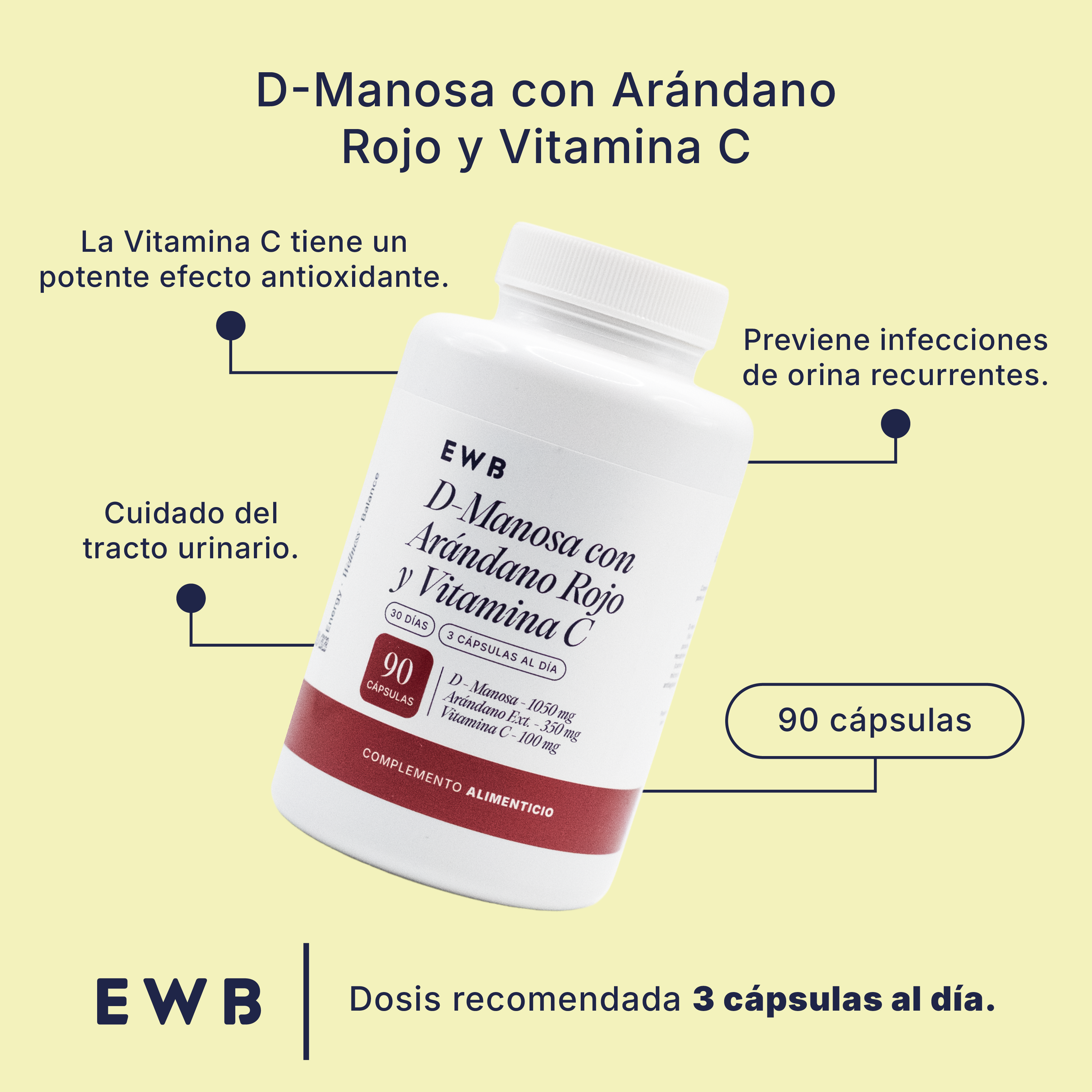 Nuestra D-Manosa con Arándao Rojo y Vitamina C, ayuda a prevenir infecciones de orina recurrentes y junto con la Vitamina C tiene un potente efecto antioxidante.